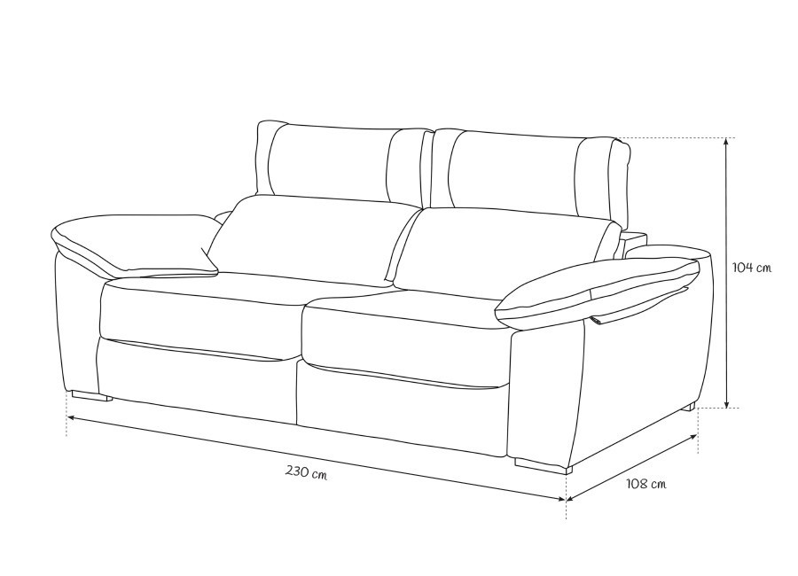 ↔ 230 cm ↕ 104 cm ↗ 108 cm (2 ASIENTOS DE 90 cm)