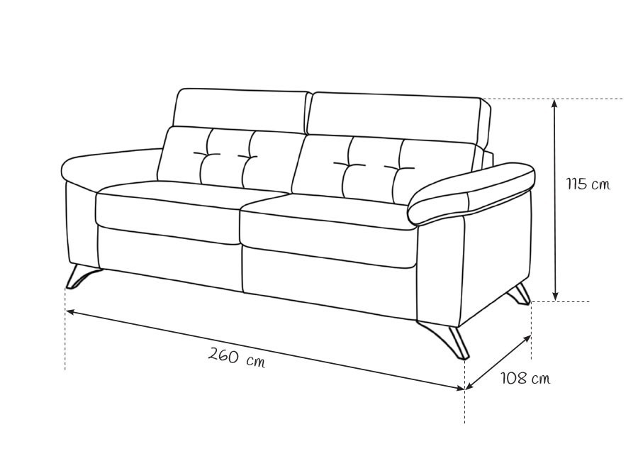 Medidas: ↔ 260 cm ↕ 115 cm ↗ 108 cm