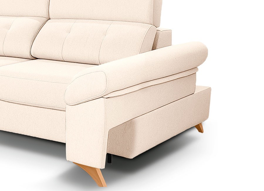 Incorpora elegantes cabeceros italianos, que combinan un diseño sofisticado con un soporte cómodo para la cabeza y el cuello. Además, sus brazos móviles con arcón integrado añaden un plus de versatilidad, permitiéndote optimizar el espacio de almacenamiento y ajustar su posición según tus necesidades. Sus patas altas facilitan la limpieza
