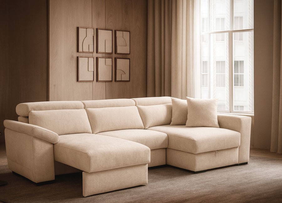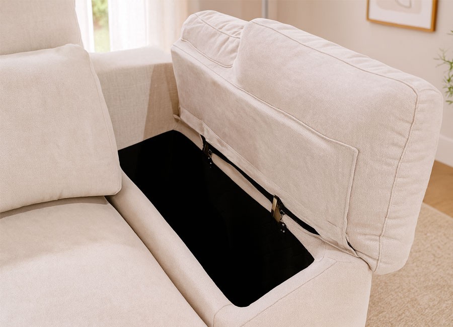Pensado para el día a día, este modelo incorpora un amplio arcón en la chaiselongue, ideal para almacenar mantas, cojines u otros objetos. Además, su brazo extensible con arcón añade un espacio extra de almacenamiento, manteniendo todo al alcance sin ocupar lugar adicional. Su diseño moderno y versátil lo convierte en la opción ideal para quienes buscan un sofá elegante, práctico y lleno de confort.