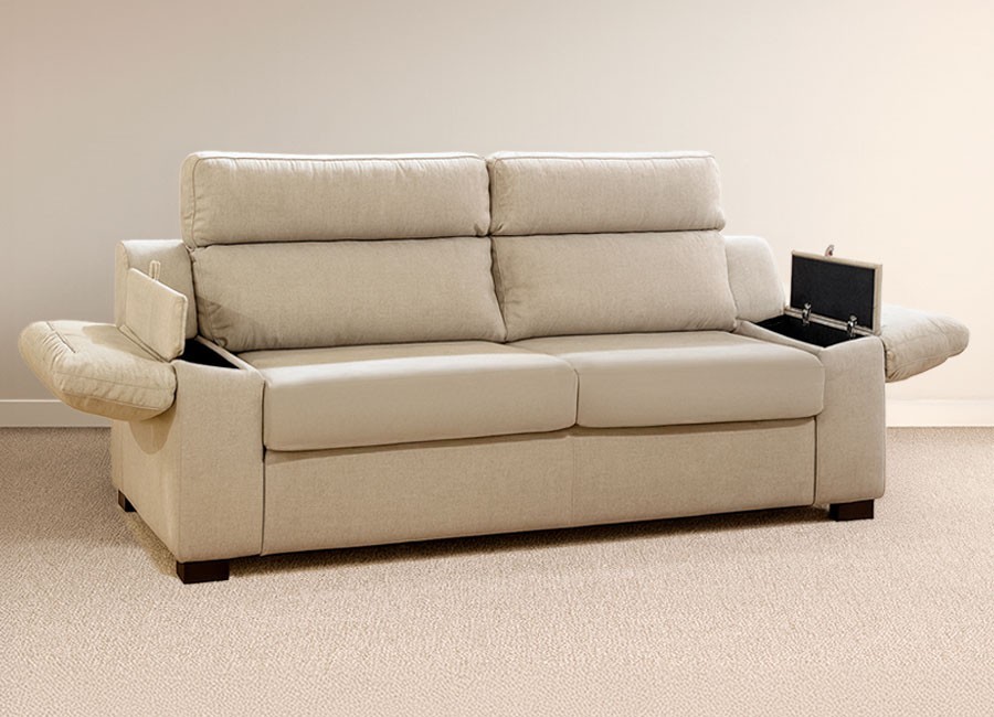 Además, cuenta con arcones integrados en los brazos, perfectos para guardar mantas, almohadas o lo que necesites tener a mano.