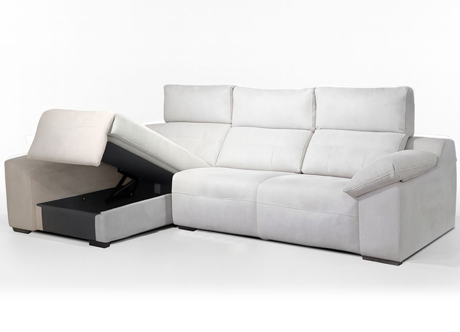 Sofá con 2 elax eléctricos, arcón en chaiselongue y cabeceros reclinables